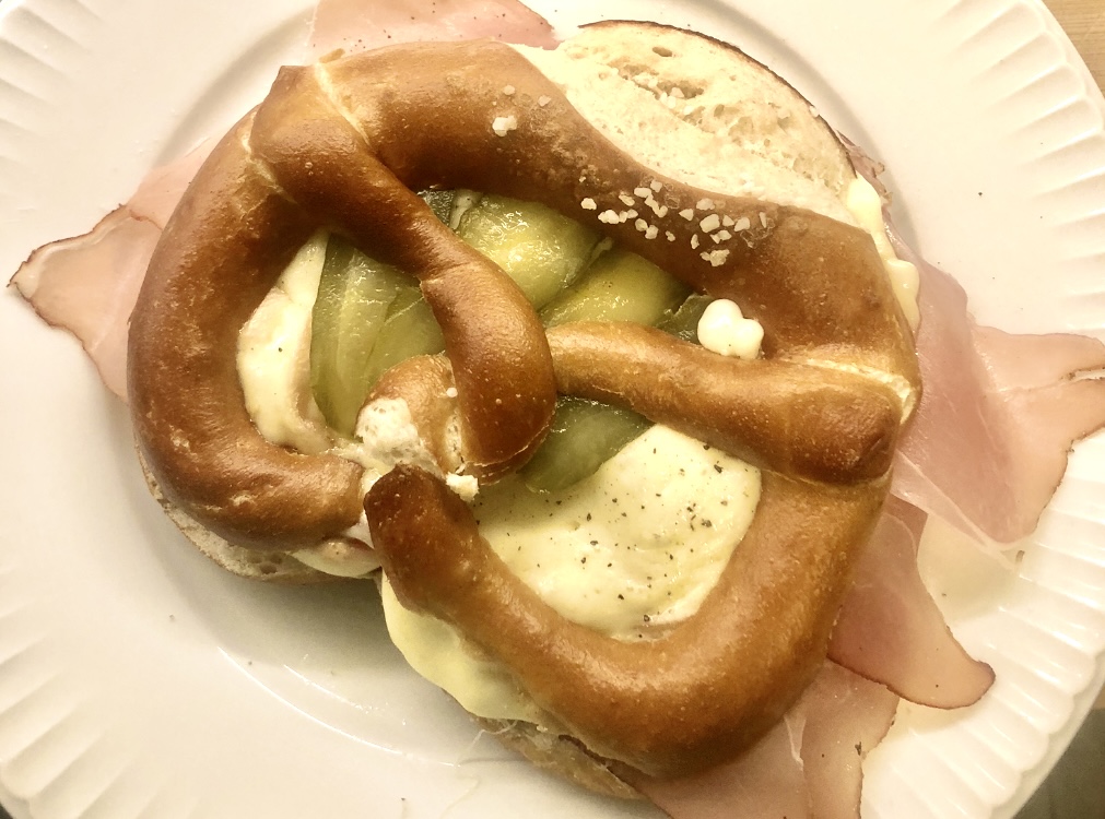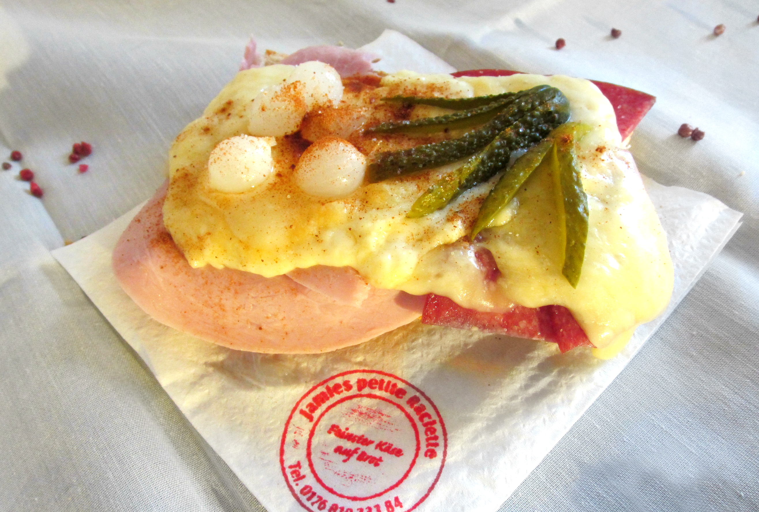 Ab dem Herbst und der Oktoberfestzeit stellen wir für Euch eine Köstlichkeit zusammen... "Jamies Brezel". Auf einer Laugenbrezel kredenzen wir Schwarzwälder Schinken mit Gürkchen. Obenauf dann zartschmelzender Raclettekäse. Ein rustikales Schmankerl das seines Gleichen sucht.